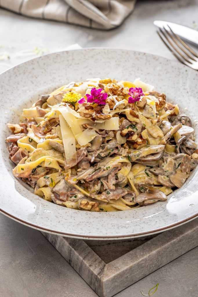 / Gombás pancettás tagliatelle pácolt erdei sonkával