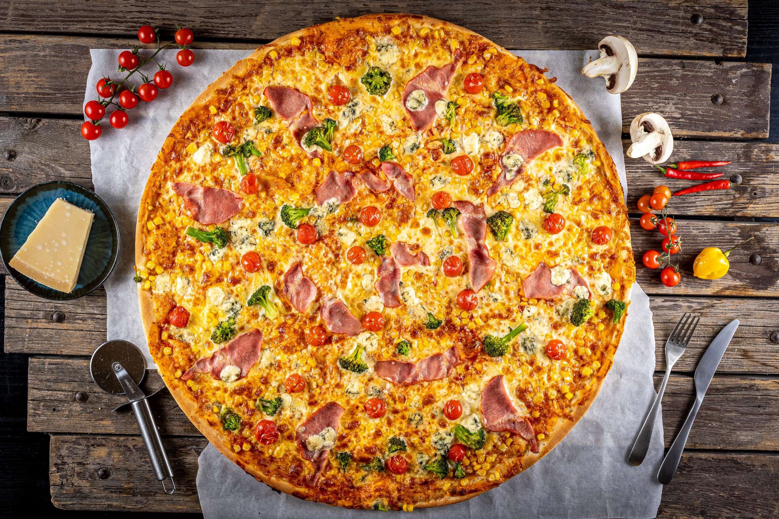 Pizza alap, sajt, válaszható 5 feltét