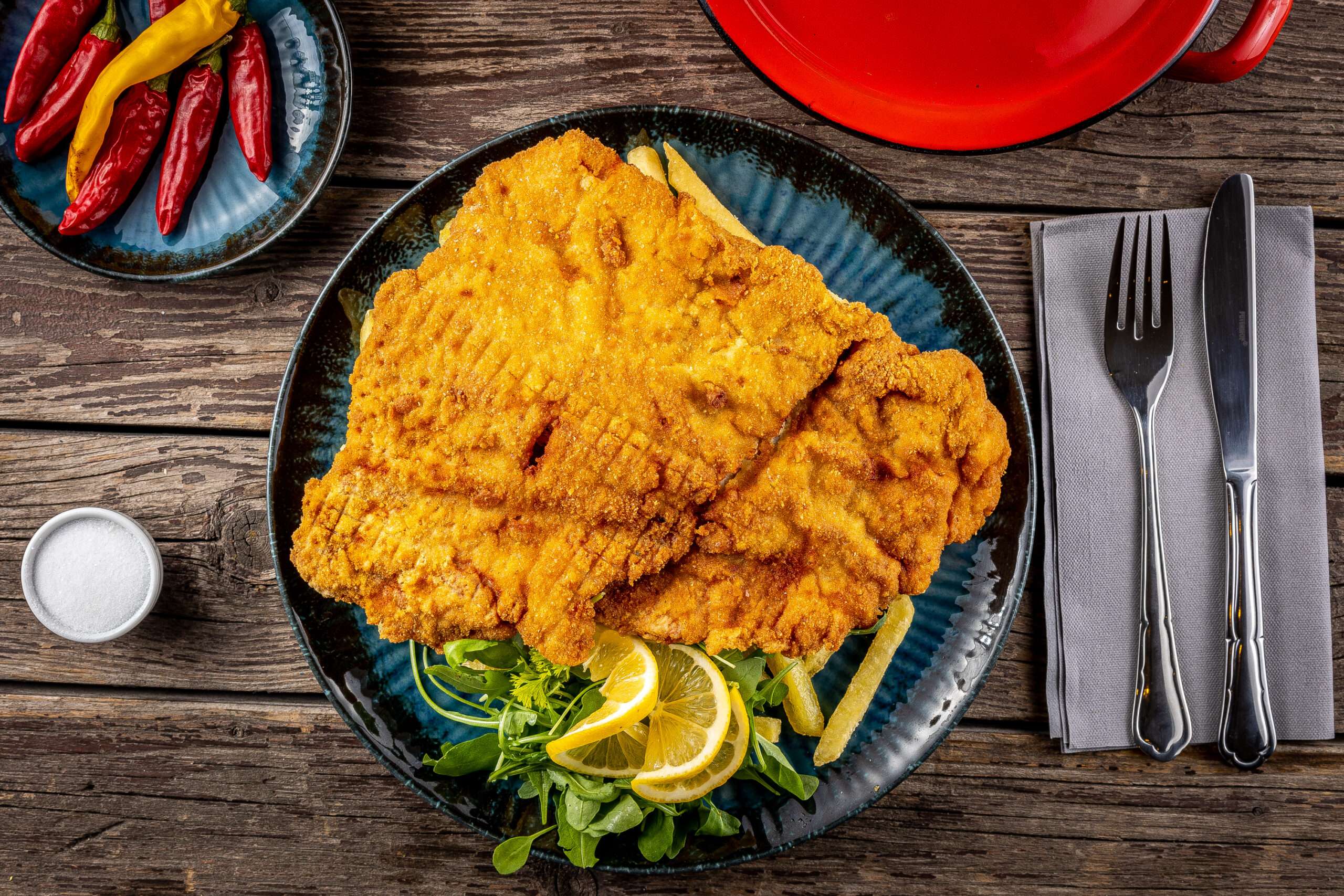 Óriás Bécsiszelet szűzpecsenyéből, vegyes körettel